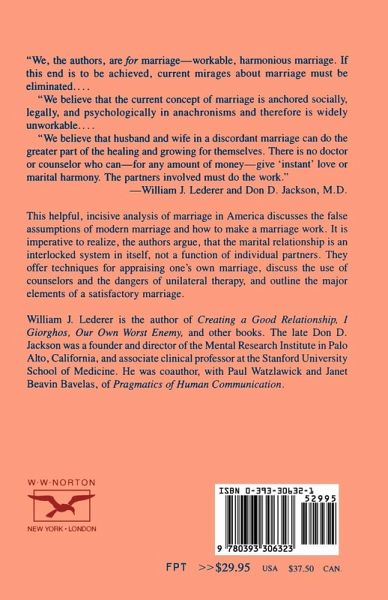 This helpful, incisive analysis of marriage in America discusses the false assumptions of modern marriage and how to make a marriage work. It is imperative to realize, the authors argue, that the marital relationship is an interlocked system in itself, not a function of individual partners. They offer techniques for appraising one's own marriage, discuss the use of counselors and the dangers of unilateral therapy, and outline the major elements of a satisfactory marriage.