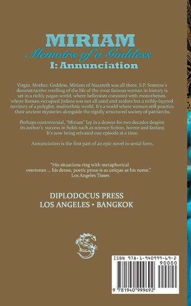 "S.P. Somtow doesn't write like anyone else" - Dean R. Koontz Virgin. Mother. Goddess. Miriam of Nazareth was all three. S.P. Somtow's deconstructive retelling of the life of the most famous woman in history is set in a richly pagan world, where hellenism coexisted with monotheism, where Roman-occupied Judaea was not all sand and zealots but a richly-layered territory of a polyglot, multiethnic world. It's a world where women still practice their ancient mysteries alongside the rigidly structured society of patriarchs. Perhaps controversial, "Miriam" lay in a drawer for two decades despite its author's success in fields such as science fiction, horror and fantasy. It's now being released one episode at a time. "Annunciation" is the first part of an epic novel in serial form.