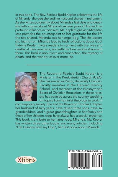 The Reverend Patricia Budd Kepler is a Minister in the Presbyterian Church (USA). She has served as Pastor, University Chaplain, Faculty member at the Harvard Divinity School, and member of the Presbyterian Board of Christian Education. In these roles, she has traveled across the country speaking on topics from feminist theology to work in contemporary society. She and the Reverend Thomas F. Kepler, her husband of nearly sixty years, have raised three sons, six grandchildren, and a great-granddaughter. In her family and those of her children, dogs have always had a special presence. This book is a tribute to her latest dog, Miranda. Ms. Kepler has written three other books and many articles, including "Life Lessons from my Dog", her first book about Miranda.