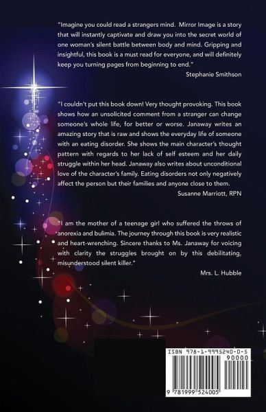 Twenty-eight year old Jenniffer Klark has her life together. She is happy; she thought. She is strong; she felt. Then one day, an unsolicited comment from a total stranger causes her to question everything in her life that she believes is good. Especially her body image. Maybe nothing really was as it seemed. Maybe it was. As Jenniffer starts to question everything around her, and herself, she begins a dangerous battle of true or false with the menacing voice in her own mind challenging her every thought; dictating her every move. A game where her truths are lies, others’ lies become her truths, and her very life is teetering on the line. Mirror Image is not just the story of one young woman’s struggle with body image and anorexia. It is a story that will take you on a journey into the darkest depths of the mind and show how negative self-talk destroys all light and life that will give rise to it. It is a story of perplexity, sacrifice, love, loss, and courage. The courage to look oneself in the mirror, to face, and stand up against the enemy that lives within.