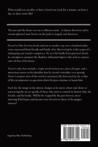 The past and the future are on a collision course. Xavier is an 18-year-old man just months away from graduating from high school and on the way to college. A chance discovery and a routine physical start him on the path to tragedy and discovery. Forced to fake his own death and run to another city over a hundred miles away, he is separated from friends and family after discovering he is the target of a kidnapping and murder conspiracy. To save his family from potential death, he attempts to outsmart the shadowy influential figures who seek to capture and rob him of his future. He joins forces with Castro, the leader of Subreption, a centralized international activist-hacktivist group. With Castro's help, he hopes to find answers to his questions as he helps Castro search for his missing sister? However, with each passing day, their fates become increasingly connected. Xavier's only clues include a single word written on a piece of paper and a mysterious tattoo on his shoulder that he doesn't remember ever getting. Xavier's Utopian view of the world is systematically destroyed by the reality of his circumstances as questions about his past continue to haunt him. Each day the image in the mirror changes as he moves closer and closer to uncovering the secret agenda of those who seek to control or destroy him, his friends, and his family. Determined to win at any cost, he struggles to survive and return home without losing the core part of who he is and what he believes. The continuous dialogue in his mind hounds him night and day. Will he still be a good person at the end of his journey? Will he be able to go back home and resume his life? Will he be trapped by the past forever, never knowing if his hopes and dreams were his own or those of the puppet masters?