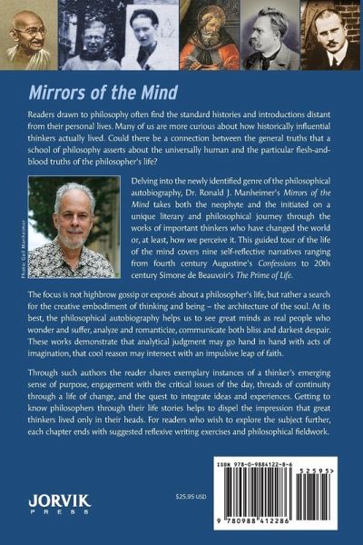 Readers drawn to philosophy often find the standard histories and introductions distant from their personal lives. Many of us are more curious about how historically influential thinkers actually lived. Could there be a connection between the general truths that a school of philosophy asserts about the universally human and the particular flesh-and-blood truths of the philosopher's life? Delving into the newly identified genre of the philosophical autobiography, Dr. Ronald J. Manheimer's Mirrors of the Mind takes both the neophyte and the initiated on a unique literary and philosophical journey through the works of important thinkers who have changed the world or, at least, how we perceive it. This guided tour of the life of the mind covers nine self-reflective narratives ranging from fourth century Augustine's Confessions to 20th century Simone de Beauvoir's The Prime of Life. The focus is not highbrow gossip or exposés about a philosopher's life, but rather a search for the creative embodiment of thinking and being - the architecture of the soul. At its best, the philosophical autobiography helps us to see great minds as real people who wonder and suffer, analyze and romanticize, communicate both bliss and darkest despair. These works demonstrate that analytical judgment may go hand in hand with acts of imagination, that cool reason may intersect with an impulsive leap of faith. Through such authors the reader shares exemplary instances of a thinker's emerging sense of purpose, engagement with the critical issues of the day, threads of continuity through a life of change, and the quest to integrate ideas and experiences. Getting to know philosophers through their life stories helps to dispel the impression that great thinkers lived only in their heads. For readers who wish to explore the subject further, each chapter ends with suggested reflexive writing exercises and philosophical fieldwork.