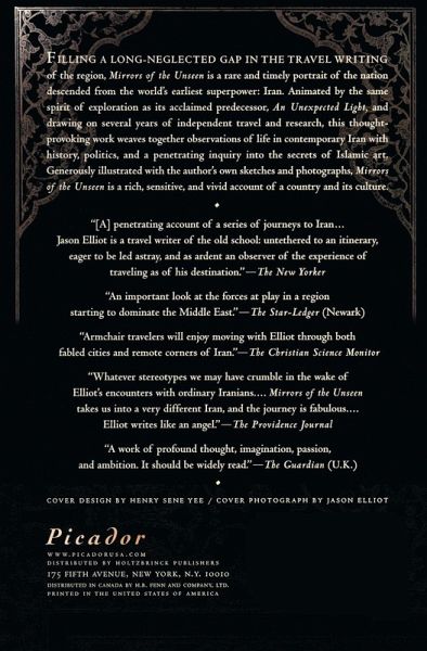 Filling a long-neglected gap in the travel writing of the region, Jason Elliot's Mirrors of the Unseen is a rare and timely portrait of the nation descended from the world's earliest superpower: Iran. Animated by the same spirit of exploration as its acclaimed predecessor, An Unexpected Light, and drawing on several years of independent travel and research, this thought-provoking work weaves together observations of life in contemporary Iran with history, politics, and a penetrating enquiry into the secrets of Islamic art. Generously illustrated with the author's own sketches and photographs, Mirrors of the Unseen is a rich, sensitive, and vivid account of a country and its culture.
