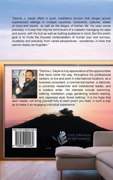 "Dennis J. Gayle offers a quiet, meditative lyricism that ranges across experienced settings in multiple countries, continents, cultures, states of mind and moods, as well as the stages of human life. He uses words precisely, in a way that may be reminiscent of a matador managing his cape and sword, with his bull as well as bullring audience in mind. But this poet's goal is to invite the focused contemplation of human joys and sorrows, mutability and precarity, from varied perspectives - sometimes, in lines that cannot readily be forgotten."