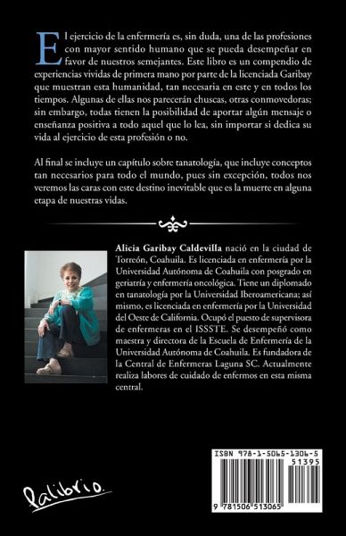 El ejercicio de la enfermería es, sin duda, una de las profesiones con mayor sentido humano que se pueda desempeñar en favor de nuestros semejantes. Este libro es un compendio de experiencias vividas de primera mano por parte de la licenciada Garibay que muestran esta humanidad, tan necesaria en este y en todos los tiempos. Algunas de ellas nos parecerán chuscas, otras conmovedoras; sin embargo, todas tienen la posibilidad de aportar algún mensaje o enseñanza positiva a todo aquel que lo lea, sin importar si dedica su vida al ejercicio de esta profesión o no. Al final se incluye un capítulo sobre tanatología, que incluye conceptos tan necesarios para todo el mundo, pues sin excepción, todos nos veremos las caras con este destino inevitable que es la muerte en alguna etapa de nuestras vidas.