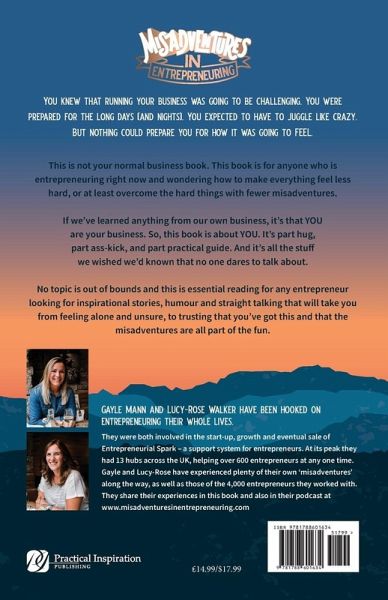 Misadventures in Entrepreneuring(R) is the brainchild of Lucy-Rose Walker and Gayle Mann who, combined, have been personally involved in the start-up, growth and eventual sale of Entrepreneurial Spark over the last 7 years. They have experienced their own "misadventures' as well as the many misadventures of the 4000+ entrepreneurs they have worked with along the way, most of which were entirely psychological. It focuses on the psychology of entrepreneuring® and how crucial it is to getting in, and out, of many of the most common misadventures. Dispelling myths about the daily challenges entrepreneurs face, and providing reassurance and inspiration, Misadventures in Entrepreneuring® delivers support and guidance to entrepreneurs of all shapes and sizes through the authors' story and those of many other entrepreneurs as they cope day to day.