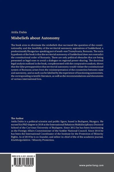 The book aims to eliminate the misbeliefs that surround the question of the constitutionality and the feasibility of the territorial autonomy aspirations of Szeklerland, a predominantly Hungarian-speaking part of south-east Transylvania, Romania. The main hypothesis of the book is that the territorial autonomy of Szeklerland does not contradict the constitutional order of Romania. There are only political obstacles that are being presented as legal ones to avoid a dialogue on regional power-sharing. The doctrinal legal analysis outlined in the book, complemented with the comparative analysis, shows that the false presupposition that territorial autonomy would violate the constitutional system of Romania arises from the misinterpretation of the connection between state and autonomy, and as such can be falsified by the experience of functioning autonomies, the corresponding scientific literature, as well as the recommendations and documents of various international fora.