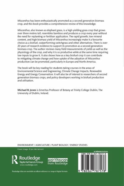 Miscanthus has been enthusiastically promoted as a second generation biomass crop, and this book provides a comprehensive review of this knowledge. Miscanthus, also known as elephant grass, is a high yielding grass crop that grows over three metres tall, resembles bamboo and produces a crop every year without the need for replanting or fertiliser application . The rapid growth, low mineral content, and high biomass yield of Miscanthus increasingly make it a favourite choice as a biofuel, outperforming switchgrass and other alternatives. There is over 20 years of research evidence to support its promotion as a second generation biomass crop. The author reviews many field measurements of yields as well as the physiology of the crop, and why it is so productive while at the same time requiring low inputs to grow it. It also shows how as a key biofuel crop it can contribute to mitigating climate change and how uptake of the adoption of Miscanthus production can be promoted, particularly in Europe and North America. The book will be key reading for students taking courses in the areas of Environmental Science and Engineering, Climate Change Impacts, Renewable Energy and Energy Conservation. It will also be of interest to researchers of second generation biomass crops, and policy developers working in biofuel production and utilization.