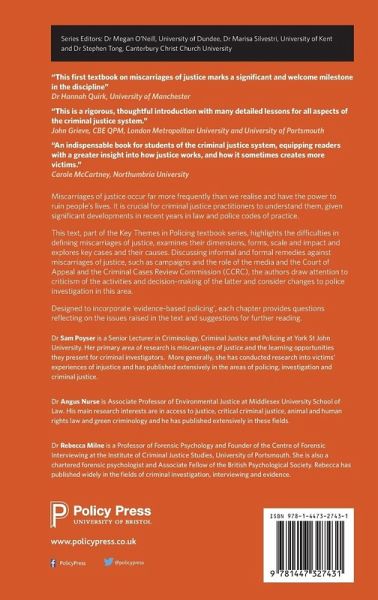 It is crucial for criminal justice practitioners to understand miscarriages of justice. This text provides an up-to-date and comprehensive analysis of miscarriages of justice, highlighting difficulties in defining them, examining their dimensions, forms, scale and impact and exploring key cases and their causes.