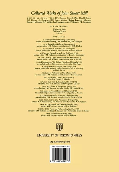 One of the English-speaking world’s most influential philosophers, John Stuart Mill (1806-1873) wrote on countless topics, including logic, politics, women’s rights, legal history, medicine, and the philosophy of science. JOHN M. ROBSON was born educated in Toronto, graduating from the University of Toronto (B.A. 1951, M.A. 1953, PH.D. 1956). After lecturing at the University of British Columbia and the University of Alberta, he joined the staff as Victoria College, University of Toronto, where he is now Professor of English. He is Associate Editor of the Collected Works of John Stuart Mill, and he also edited Edmund Burke’s Appel from the New to the Old Whigs, J.S. Mill: A Selection, and Editing Nineteenth-Century Texts.