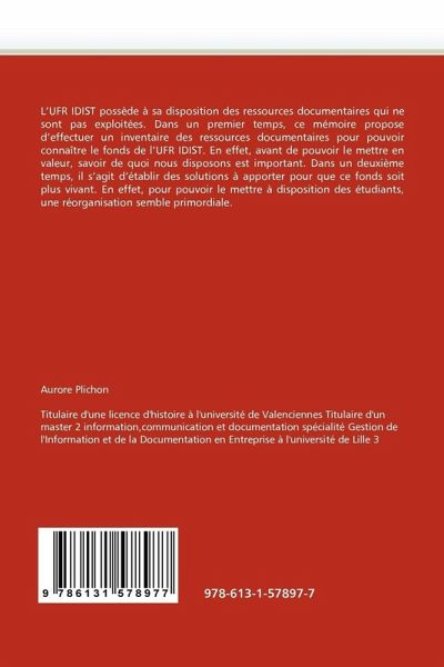 L'UFR IDIST possède à sa disposition des ressources documentaires qui ne sont pas exploitées. Dans un premier temps, ce mémoire propose d'effectuer un inventaire des ressources documentaires pour pouvoir connaître le fonds de l'UFR IDIST. En effet, avant de pouvoir le mettre en valeur, savoir de quoi nous disposons est important. Dans un deuxième temps, il s'agit d'établir des solutions à apporter pour que ce fonds soit plus vivant. En effet, pour pouvoir le mettre à disposition des étudiants, une réorganisation semble primordiale.