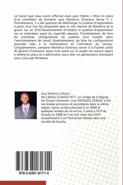 Le travail que nous avons effectué avait pour thème « Mise en place d'un contrôleur de domaine sous Mandriva Directory Server 5 ». Premièrement, il a été question de télécharger le système d'exploitation à partir d'un lien ftp disponible dans le site internet de Mandriva et le graver sur un DVD Deuxièmement d'installer le système d'exploitation sur un ordinateur ayant les capacités requises. Troisièmement, de faire les premières configurations du système ainsi installé selon l'environnement de travail. Quatrièmement, de faire les configurations avancées liées à la manipulation et l'utilisation du serveur. Cinquièmement, comparer Mandriva Directory server 5 à d'autres outils de gestion d'annuaire. Apres trois passé sur ce projet nos aurons appris à mettre en place et à administrer aussi bien un gestionnaire d'annuaire sous Linux que Windows.