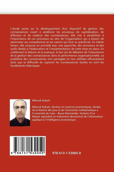 L'étude porte sur le développement d'un dispositif de gestion des connaissances visant à améliorer les processus de capitalisation, de diffusion et de création des connaissances. Elle vise à sensibiliser à l'importance de ces processus au sein de l'organisation qui a besoin de pérenniser ses compétences et ses savoirs qui font sa spécificité. En même temps, elle propose un procédé avec une approche, des processus et des outils dédiés à l'élaboration et l'implémentation de cette mise en place. En combinant la théorie et la pratique, le but est de débattre de l'importance de la gestion des connaissances dans la performance organisationnelle. Le problème des connaissances non partagées et non utilisées efficacement ainsi que la difficulté de capturer les connaissances tacites en sont les fondements théoriques.