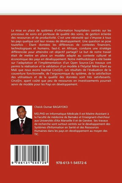 La mise en place de systèmes d'information hospitaliers centrés sur les processus de soins est porteuse de qualité des soins, de gestion éclairée des ressources et de productivité. C'est une nécessité qui s'impose à tous les pays quelque soit leur niveau de développement. Une question se pose toutefois : Étant données les différences de contextes financiers, technologiques et humains, faut-il, en Afrique, conduire une stratégie différenciée pour atteindre cet objectif partagé? Le but de notre travail était de mettre en place un modèle adapté au contexte culturel et économique des pays en développement. Notre méthodologie a été basée sur l'adaptation et l'implémentation d'un Open Source.Ces travaux ont permis la réalisation et la validation d'un modèle à l'hôpital Mère Efant au Mali que nous avons baptisé Cinz@n. Les résultats de l'évaluation de la couverture fonctionnelle, de l'ergonomique du système, de la satisfaction des utilisateurs et de la qualité des données sont très satisfaisants. Cinz@n, ayant coûté que peu de ressources en investissements pourrait servir de modèle pour les Pays en développement.