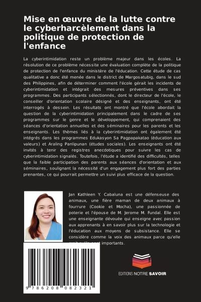 La cyberintimidation reste un problème majeur dans les écoles. La résolution de ce problème nécessite une évaluation complète de la politique de protection de l'enfance du ministère de l'éducation. Cette étude de cas qualitative a donc été menée dans le district de Margosatubig, dans le sud des Philippines, afin de déterminer comment l'école gérait les incidents de cyberintimidation et intégrait des mesures préventives dans ses programmes. Des participants sélectionnés, dont le directeur de l'école, le conseiller d'orientation scolaire désigné et des enseignants, ont été interrogés à dessein. Les résultats ont montré que l'école abordait la question de la cyberintimidation principalement dans le cadre de ses programmes sur le genre et le développement, qui comprenaient des séances d'orientation annuelles et des séminaires pour les parents et les enseignants. Les thèmes liés à la cyberintimidation ont également été intégrés dans les programmes Edukasyon Sa Pagpapakatao (éducation aux valeurs) et Araling Panlipunan (études sociales). Les enseignants ont été invités à tenir des registres anecdotiques pour suivre les cas de cyberintimidation signalés. Toutefois, l'étude a identifié des difficultés, telles que la faible participation des parents aux séances d'orientation et aux séminaires, soulignant la nécessité d'un engagement plus fort des parties prenantes, ce qui pourrait permettre un suivi plus efficace de la question.