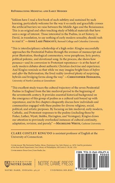 King'oo examines the critical importance of the Penitential Psalms in England between the end of the fourteenth and the beginning of the seventeenth century.