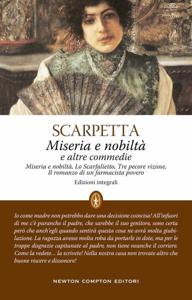 Eduardo Scarpetta visse nel teatro e per il teatro. Egli scrisse per far ridere a ogni costo, aggirando la mente, saltando a pie' pari le mediazioni del pensiero, assolutamente convinto che solo l'ilarità potesse offrire all'uomo l'occasione, la possibilità e il mezzo per difendersi dalla ripetitività del quotidiano e dai suoi meccanismi che demoliscono i sogni, le aspirazioni, la volontà stessa. Per Scarpetta solo il teatro possiede gli strumenti per costruire un'oasi di evasione, arrivando a forzare imprevedibilmente il ruolo e i limiti della fantasia. Sono qui raccolte quattro delle sue commedie più famose, tutte trasposte al cinema, a partire da Miseria e nobiltà , il suo capolavoro, del quale resta immortale la versione del 1954, diretta da Mario Mattioli, in cui Totò ha il ruolo del protagonista, Felice Sciosciammocca. «Io come madre non potrebbo dare una decisione coincisa! All'infuori di me c'è puranche il padre, che sarebbe il suo genitore, sono certa però che anch'egli quando sentirà questa cosa ne avrà molta giubilazione. La ragazza avesse molta roba da portarle in dote, ma per le troppe disgrazie capitanate al padre, non tiene neanche il corriere. Come la vedete¿ la scrivete! Nella nostra casa non trovate altro che buone viscere e dissonore!».