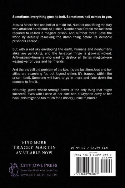 Hell on Earth. Magic. Demons. And One Woman's Last Chance to Save Everything. Jessica Moore's life has become an impossible mission. The magical prison holding dangerous demons is on the brink of breaking free, and only Jessica has the power to stop it. With a world on the edge of chaos, she must bring the fury that attacked her friends to justice, find the last artifact needed to lock the prison, and save humanity before the demons escape. As the sky burns with red storms, panic spreads across the world. Humans and nonhumans alike are desperate, and a dangerous faction of anti-magers is waging war on Jessica and her allies, determined to destroy all things magical. The key to ending the madness is trapped within the prison, guarded by the very demons threatening to escape. Legend says it’s the only way to prevent the apocalypse, but only one person has the strange power to survive the hellish depths of the prison itself. With Lucen by her side and an army of gryphons at her back, Jessica must face the unthinkable. Can she survive the nightmare and save the world—or will the darkness consume everything she loves?