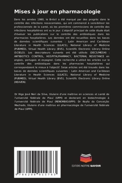 Dans les années 1980, le Brésil a été marqué par des progrès dans le contrôle des infections nosocomiales, qui ont commencé à sensibiliser les professionnels de la santé, où les premières commissions de contrôle des infections hospitalières ont vu le jour. L'objectif principal de cette étude était d'évaluer les publications sur le contrôle des antibiotiques dans les pharmacies hospitalières. Les données ont été recueillies dans les bases de données scientifiques suivantes : Latin American and Caribbean Literature in Health Sciences (LILACS), National Library of Medicine (PUBMED), Virtual Health Library (BVS), Scientific Electronic Library Online (SCIELO). Les descripteurs suivants ont été utilisés (DECS/MESH) : ANTIBIOTICS CONTROL, HOSPITALPHARMACY, BACTERIAL RESISTANCE en anglais, portugais et espagnol. Cette recherche a utilisé les articles sur le contrôle des antibiotiques dans les pharmacies hospitalières qui correspondaient le mieux à l'objectif. Seize articles ont été trouvés dans les bases de données scientifiques suivantes : Latin American and Caribbean Literature in Health Sciences (LILACS), National Library of Medicine (PUBMED), Virtual Health Library (BVS), Scientific Electronic Library Online (HEAVEN).