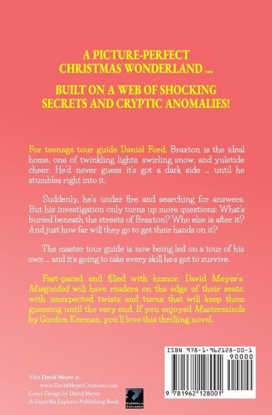 A picture-perfect Christmas wonderland ... built on a web of shocking secrets and cryptic anomalies. For teenage tour guide Daniel Ford, Braxton is the ideal home, one of twinkling lights, swirling snow, and yuletide cheer. He'd never guess it's got a dark side ... until he stumbles right into it. Suddenly, he's under fire and searching for answers. But his investigation only turns up more questions: What's buried beneath the streets of Braxton? Who else is after it? And just how far will they go to get their hands on it? The master tour guide is now being led on a tour of his own ... and it's going to take every skill he's got to survive.Fast-paced and filled with humor, David Meyer's Misguided will have readers on the edge of their seats, with unexpected twists and turns that will keep them guessing until the very end. If you enjoyed Masterminds by Gordon Korman, you'll love this thrilling novel. Buy now before the price changes!