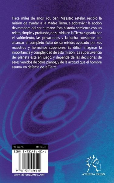 Hace miles de a?os, You San, Maestro estelar, recibi? la misi?n de ayudar a la Madre Tierra, a sobrevivir la acci?n devastadora del ser humano. Esta historia comienza con un relato, simple y profundo, de su vida en la Tierra, signada por el sufrimiento, las privaciones y la lucha constante por alcanzar el completo ?xito de su misi?n, ayudado por sus maestros y hermanos superiores. Es dif?cil imaginar la importancia y complejidad de esta misi?n. La supervivencia del planeta est? en juego, y depende de las decisiones de seres venidos de otros planos, y de la actitud que el hombre asuma, en defensa de la Tierra.
