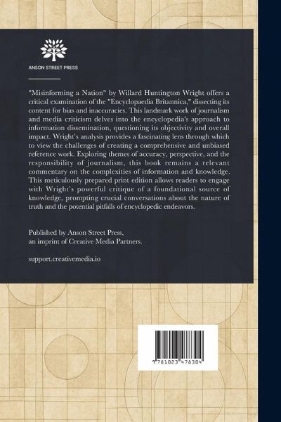 "Misinforming a Nation" by Willard Huntington Wright offers a critical examination of the "Encyclopaedia Britannica," dissecting its content for bias and inaccuracies. This landmark work of journalism and media criticism delves into the encyclopedia's approach to information dissemination, questioning its objectivity and overall impact. Wright's analysis provides a fascinating lens through which to view the challenges of creating a comprehensive and unbiased reference work. Exploring themes of accuracy, perspective, and the responsibility of journalism, this book remains a relevant commentary on the complexities of information and knowledge. This meticulously prepared print edition allows readers to engage with Wright's powerful critique of a foundational source of knowledge, prompting crucial conversations about the nature of truth and the potential pitfalls of encyclopedic endeavors. This work has been selected by scholars as being culturally important, and is part of the knowledge base of civilization as we know it. This work is in the public domain in the United States of America, and possibly other nations. Within the United States, you may freely copy and distribute this work, as no entity (individual or corporate) has a copyright on the body of the work. Scholars believe, and we concur, that this work is important enough to be preserved, reproduced, and made generally available to the public. We appreciate your support of the preservation process, and thank you for being an important part of keeping this knowledge alive and relevant.