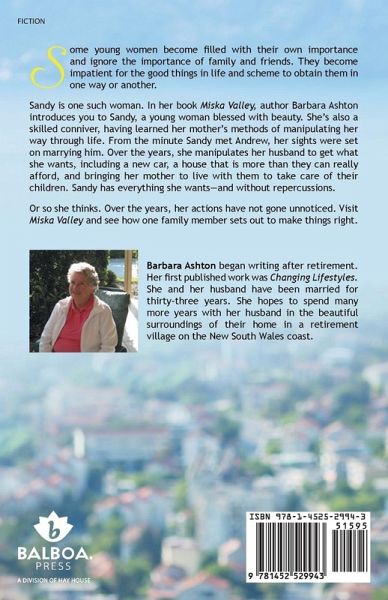 Some young women become filled with their own importance and ignore the importance of family and friends. They become impatient for the good things in life and scheme to obtain them in one way or another. Sandy is one such woman. In her book Miska Valley, author Barbara Ashton introduces you to Sandy, a young woman blessed with beauty. She's also a skilled conniver, having learned her mother's methods of manipulating her way through life. From the minute Sandy met Andrew, her sights were set on marrying him. Over the years, she manipulates her husband to get what she wants, including a new car, a house that is more than they can really afford, and bringing her mother to live with them to take care of their children. Sandy has everything she wants-and without repercussions. Or so she thinks. Over the years, her actions have not gone unnoticed. Visit Miska Valley and see how one family member sets out to make things right.