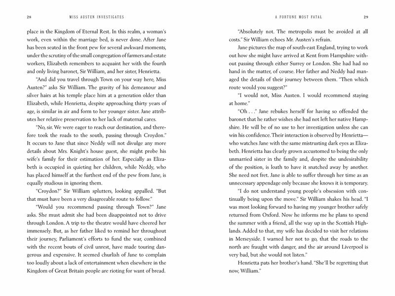 1797: A broken-hearted Jane Austen travels to Kent to look after her brother Neddy's children and further her writing. She soon realizes it's imperative she uncovers the true identity of a mysterious young woman claiming to be a shipwrecked foreign princess before the interloper can swindle Neddy's adoptive mother out of her fortune and steal the much-anticipated inheritance all the Austens rely on.