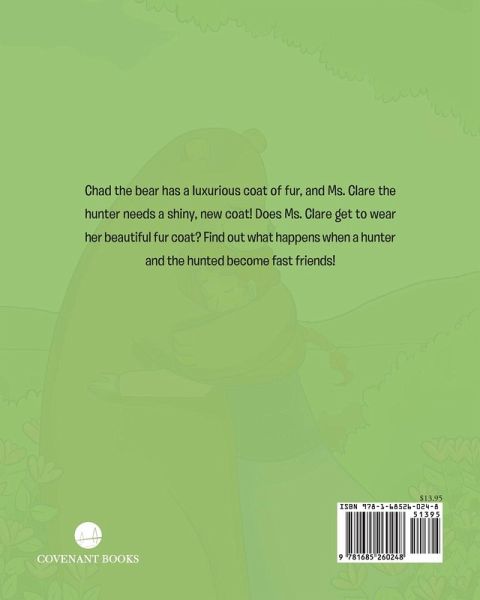 Chad the bear has a luxurious coat of fur, and Ms. Clare the hunter needs a shiny, new coat! Does Ms. Clare get to wear her beautiful fur coat? Find out what happens when a hunter and the hunted become fast friends!
