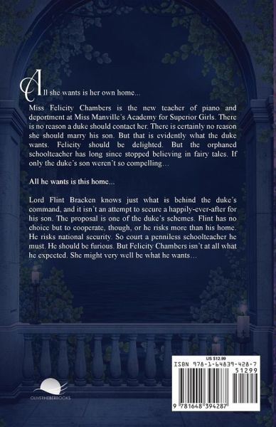 ALL SHE WANTS IS HER OWN HOME Miss Felicity Chambers is the new teacher of piano and deportment at Miss Manville's Academy for Superior Girls. There is no reason a duke should contact her. There is certainly no reason she should marry his son. But that is evidently what the duke wants. Felicity should be delighted. But the orphaned schoolteacher has long since stopped believing in fairy tales. If only the duke's son weren't so compelling... ALL HE WANTS IS THIS HOME Lord Flint Bracken knows just what is behind the duke's command, and it isn't an attempt to secure a happily-ever-after for his son. The proposal is one of the duke's schemes. Flint has no choice but to cooperate, though, or he risks more than his home. He risks national security. So court a penniless schoolteacher he must. He should be furious. But Felicity Chambers isn't at all what he expected. She might very well be what he wants...