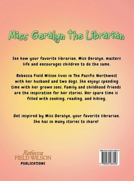 See how your favorite librarian, Miss Geralyn, masters life and encourages children to do the same. Rebecca Field Wilson lives in the Pacific Northwest with her husband and two dogs. She enjoys spending time with her grown sons. Family and childhood friends are the inspiration for her stories. Her spare time is filled with cooking, reading, and hiking. Get inspired by Miss Geralyn, your favorite librarian. She has so many stories to share!