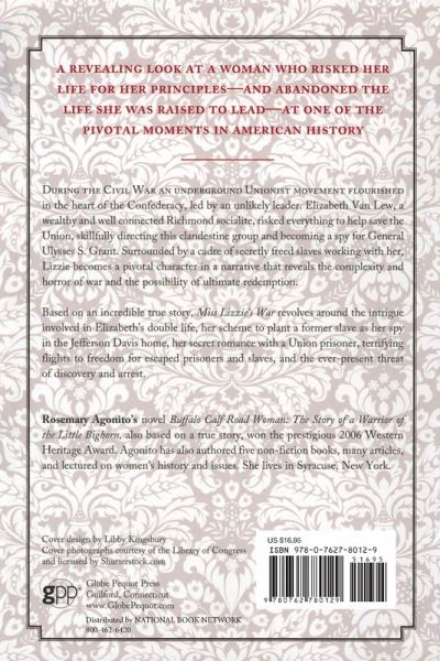 As the Civil War ground on, an underground Unionist movement flourished in the heart of the Confederacy, led by an unlikely leader. Elizabeth Van Lew, a wealthy and well connected member of Richmond's elite, risked everything to help save the Union, skillfully directing this clandestine group and becoming General Ulysses S. Grant’s spy in Richmond. Surrounded by a cadre of "slaves" secretly freed and working with her at the risk of their lives--and hers--Lizzie becomes a pivotal character in the narrative that reveals the complexity and horror of war and the possibility of ultimate redemption. Based on an incredible true story, Lizzie's War revolves around a number of elements:the intrigue involved in Elizabeth’s double life, her scheme to plant a former slave as her spy in the Jefferson Davis home, her secret romance with a Union prisoner, the dangerous work andconspiracies entailed in running a spy network for the Federal Government in the Confederate capital, terrifying flights to freedom engineered by Elizabeth for escaped prisoners and slaves, andongoing Confederate surveillance, investigations and arrests of Unionists.