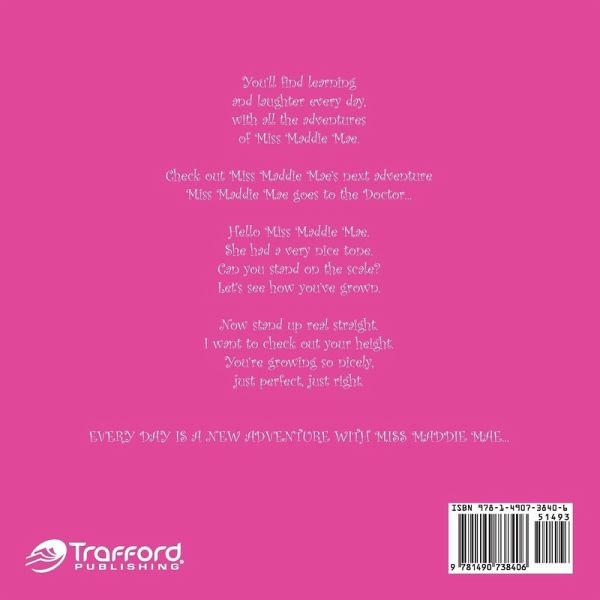 You'll find learning and laughter every day, with all the adventures of Miss Maddie Mae. Check out Miss Maddie Mae's next adventure Miss Maddie Mae goes to the Doctor... Hello Miss Maddie Mae. She had a very nice tone. Can you stand on the scale? Let's see how you've grown. Now stand up real straight. I want to check out your height. You're growing so nicely, just perfect, just right. EVERY DAY IS A NEW ADVENTURE WITH MISS MADDIE MAE...