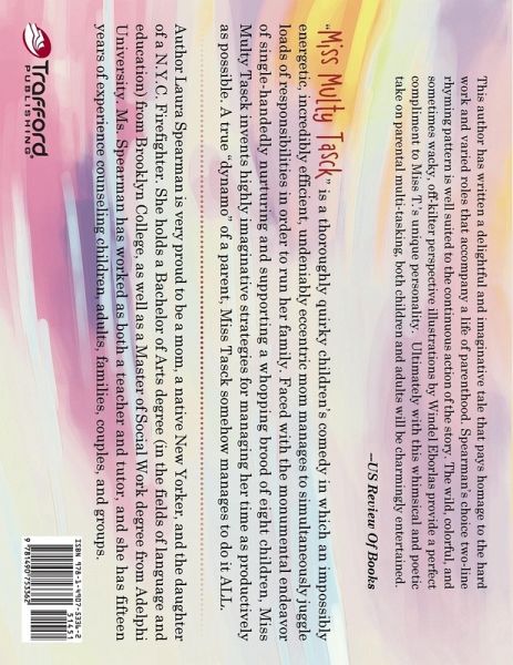 "Miss Multy Tasck" is a thoroughly quirky children's comedy in which an impossibly energetic, incredibly efficient, undeniably eccentric mom manages to simultaneously juggle loads of responsibilities in order to run her family. Faced with the monumental endeavor of single-handedly nurturing and supporting a whopping brood of eight children, Miss Multy Tasck invents highly imaginative strategies for managing her time as productively as possible. A true "dynamo" of a parent, Miss Tasck somehow manages to do it ALL.
