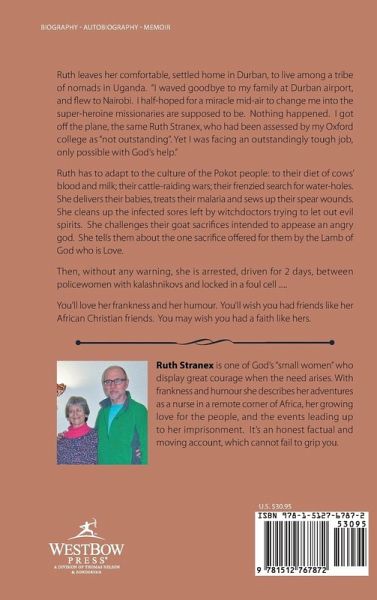 Ruth leaves her comfortable, settled home in Durban, to live among a tribe of nomads in Uganda. "I waved goodbye to my family at Durban airport, and flew to Nairobi. I half-hoped for a miracle mid-air to change me into the super-heroine missionaries are supposed to be. Nothing happened. I got off the plane, the same Ruth Stranex, who had been assessed by my Oxford college as "not outstanding". Yet I was facing an outstandingly tough job, only possible with God's help." Ruth has to adapt to the culture of the Pokot people: to their diet of cows' blood and milk; their cattle-raiding wars; their frenzied search for water-holes. She delivers their babies, treats their malaria and sews up their spear wounds. She cleans up the infected sores left by witchdoctors trying to let out evil spirits. She challenges their goat sacrifices intended to appease an angry god. She tells them about the one sacrifice offered for them by the Lamb of God who is Love. Then, without any warning, she is arrested, driven for 2 days, between policewomen with kalashnikovs and locked in a foul cell ..... You'll love her frankness and her humour. You'll wish you had friends like her African Christian friends. You may wish you had a faith like hers.
