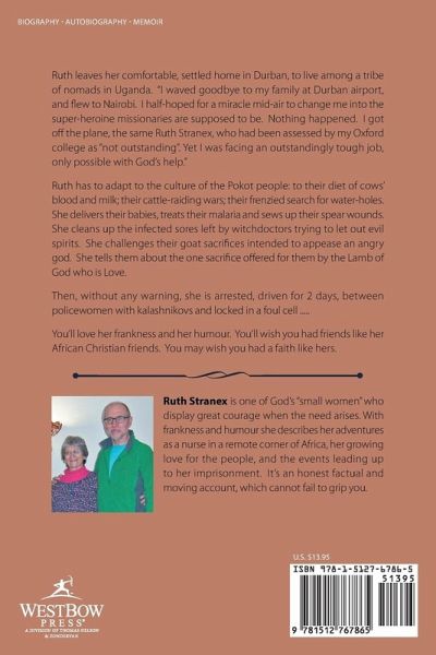 Ruth leaves her comfortable, settled home in Durban, to live among a tribe of nomads in Uganda. "I waved goodbye to my family at Durban airport, and flew to Nairobi. I half-hoped for a miracle mid-air to change me into the super-heroine missionaries are supposed to be. Nothing happened. I got off the plane, the same Ruth Stranex, who had been assessed by my Oxford college as "not outstanding". Yet I was facing an outstandingly tough job, only possible with God's help." Ruth has to adapt to the culture of the Pokot people: to their diet of cows' blood and milk; their cattle-raiding wars; their frenzied search for water-holes. She delivers their babies, treats their malaria and sews up their spear wounds. She cleans up the infected sores left by witchdoctors trying to let out evil spirits. She challenges their goat sacrifices intended to appease an angry god. She tells them about the one sacrifice offered for them by the Lamb of God who is Love. Then, without any warning, she is arrested, driven for 2 days, between policewomen with kalashnikovs and locked in a foul cell ..... You'll love her frankness and her humour. You'll wish you had friends like her African Christian friends. You may wish you had a faith like hers.