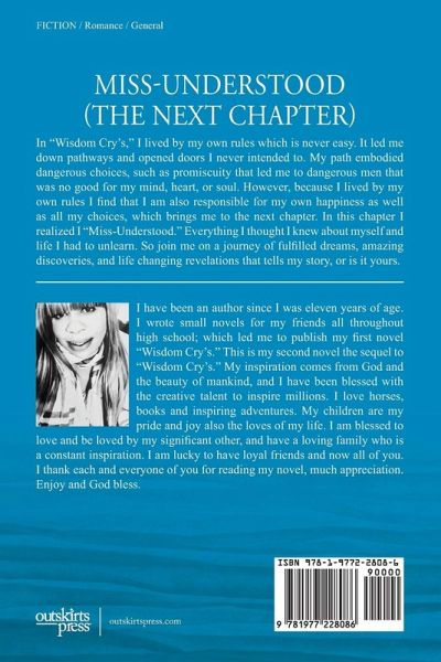 "Miss-Understood," is a sequel to my previous novel "Wisdom Cry's." It continues the story of a woman, whose choices led her on roads she never intended to travel. But on her journey, although burdened by her negative choices, she somehow managed to turn it into positives: and discovered that the darkest night, always give way to bright sunshine. Enjoy her journey of adventure, amazing destinations, exciting discoveries, and yes, love.