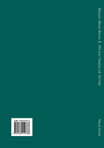 This newly engraved vocal score for Mozart's popular youthful Mass has been carefully edited, complete with measure numbers, using the composer's manuscript and several classic keyboard arrangements as a starting point. It is compatible with the orchestral material issued by Breitkopf (plus reprints from Luck's and Kalmus) and also with the Neue Mozart Ausgabe. The large A4 format is especially helpful for choruses, vocalists and accompanists. Matching conductor score and orchestra parts are also available from Serenissima Music.