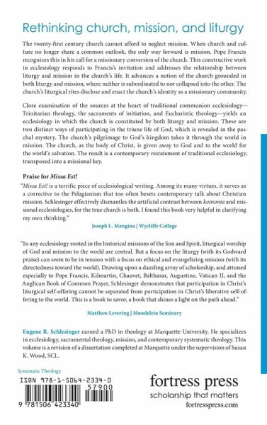 Missa Est! is a constructive work in ecclesiology, and particularly the relationship between liturgy and mission in the church's life.