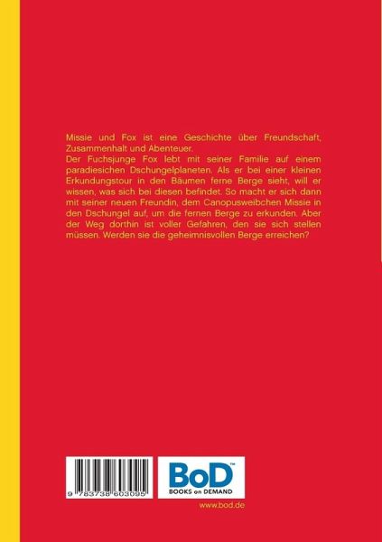 Missie und Fox ist eine Geschichte über Freundschaft, Zusammenhalt und Abenteuer.Der Fuchsjunge Fox lebt mit seiner Familie auf einem paradiesichen Dschungelplaneten. Als er bei einer kleinen Erkundungstour in den Bäumen ferne Berge sieht, will er wissen, was sich bei diesen befindet. So macht er sich dann mit seiner neuen Freundin, dem Canopusweibchen Missie in den Dschungel auf, um die fernen Berge zu erkunden. Aber der Weg dorthin ist voller Gefahren, den sie sich stellen müssen. Werden sie die geheimnisvollen Berge erreichen?