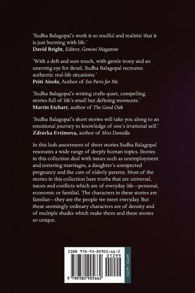 In this lush assortment of short stories Sudha Balagopal resonates a wide range of deeply human topics. Stories in this collection deal with issues such as unemployment and teetering marriages, a daughter's unexpected pregnancy and the care of elderly parents. Most of the stories in this collection bare truths that are universal, issues and conflicts which are of everyday life---personal, economic or familial. The characters in these stories are familiar---they are the people we meet everyday. But these seemingly ordinary characters are of density and of multiple shades which make them and these stories so unique.