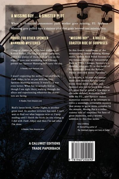 This fourth installment of the Spencer Manning Mystery series focuses on the famous Riverview Amusement Park in Chicago. In this tale, a sixteen-year-old amusement park worker fails to come home from work one day, and Spencer sets out to track him down. Spencer makes numerous enemies as he attempts to solve a seemingly impossible mystery that seems to grow in complexity by the minute. When he starts to ask questions, missing turns to murder and Spencer is pulled into a sinister plot that goes far beyond a missing boy and promises to be a rollercoaster ride of surprises for fans of great mysteries and a worthy addition to this fine series.