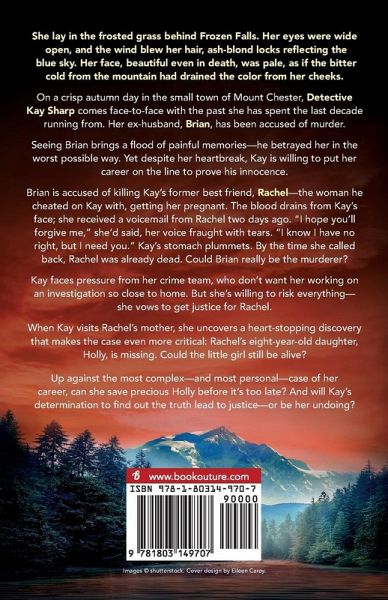 She lay in the frosted grass behind Frozen Falls. Her eyes were wide open, and the wind blew her hair, ash-blond locks reflecting the blue sky. Her face, beautiful even in death, was pale, as if the bitter cold from the mountain had drained the color from her cheeks. On a crisp autumn day in the small town of Mount Chester, Detective Kay Sharp comes face-to-face with the past she has spent the last decade running from. Her ex-husband, Brian, has been accused of murder. Seeing Brian brings a flood of painful memories-he betrayed her in the worst possible way. Yet despite her heartbreak, Kay is willing to put her career on the line to prove his innocence. Brian is accused of killing Kay's former best friend, Rachel-the woman he cheated on Kay with, getting her pregnant. The blood drains from Kay's face; she received a voicemail from Rachel two days ago. "I hope you'll forgive me," she'd said, her voice fraught with tears. "I know I have no right, but I need you." Kay's stomach plummets. By the time she called back, Rachel was already dead. Could Brian really be the murderer? Kay faces pressure from her crime team, who don't want her working on an investigation so close to home. But she's willing to risk everything-she vows to get justice for Rachel. When Kay visit's Rachel's mother, she uncovers a heart-stopping discovery that makes the case even more critical: Rachel's eight-year-old daughter, Holly, is missing. Could the little girl still be alive? Up against the most complex-and most personal-case of her career, can she save precious Holly before it's too late? And will Kay's determination to find out the truth lead to justice-or be her undoing? Thrillers don't get more gripping than this! You'll speed through this addictive, twist-filled page-turner with a racing heart. Perfect for fans of Robert Dugoni, Karin Slaughter and Rachel Kaine. Readers totally love Leslie Wolfe: "Wow! I am blown away by just how gripping and intense this read was... I will be reading every word written by Leslie from now on!" Goodreads reviewer, ¿¿¿¿¿ "Oh my god!!... I cannot express the thrill I felt reading this book. Phenomenal!!" Goodreads reviewer, ¿¿¿¿¿ "Wow, gripping from start to finish. I just had to finish it in one day." Goodreads reviewer, ¿¿¿¿¿ "Loved it... A must-read! One of the best crime dramas I have ever read. Once I started reading, I could not put it down." Goodreads reviewer, ¿¿¿¿¿ "I loved this book... A nail-biting, mind-numbingly wonderful book... Thank you, Leslie Wolfe!!! You now have another extreme fan!!!" Goodreads reviewer, ¿¿¿¿¿ "All I can say is GADZOOKS! It was an amazing read." Goodreads reviewer, ¿¿¿¿¿ "I read this book start to finish in three hours; I couldn't put it down!" Goodreads reviewer, ¿¿¿¿¿