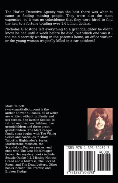 The Harlan Detective Agency was the best there was when it came to finding missing people. They were also the most expensive, so it was no coincidence that they were hired to find the heir to a fortune totaling over 1.6 billion dollars. Nicholas Gladstone left everything to a granddaughter he didn't know he had until a week before he died, but which one was it - the maid secretly working in the parent's home, an office worker, or the young woman tragically killed in a car accident?