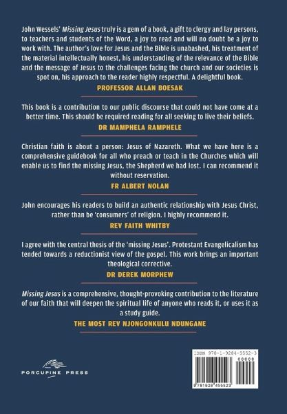 ABOUT THIS BOOK You will love how this guidebook leads you on the exciting journey of getting to know Jesus better. You will come to appreciate the relevance of Jesus to all dimensions of life today - including the social, spiritual, religious, economic, political, relational and ecological realities. John Wessels has developed and taught the contents of this guidebook in courses since the year 2000. Over the years he has often re-written, enlarged and refined the guidebook. Now, nineteen years after the start of this project, he has decided it is ready for publication. The guidebook can be used as a comprehensive journey of discipleship for individuals, small groups or congregations. It may also be divided into three separate shorter studies in the following way: 'Jesus rediscovered!' (six-week journey), 'The Kingdom