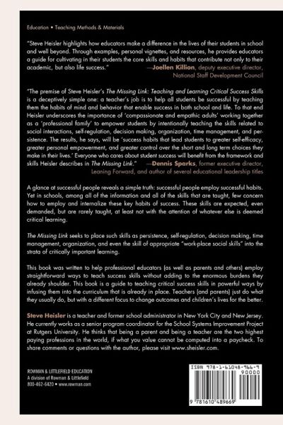 The Missing Link was written to help professional educators (as well as parents and others) employ straight-forward ways to teach success skills without adding to the enormous burdens they already shoulder. This book is a guide to teaching critical success skills in powerful ways by infusing them into the curriculum that is already in place.