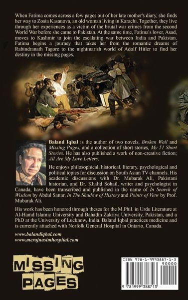 When Fatima comes across a few pages out of her late mother's diary, she finds her way to Zosia Kasanova, an old woman living in Karachi. Together, they live through her experiences as a victim of the brutal war crimes from the second World War before she came to Pakistan. At the same time, Fatima's lover, Asad, moves to Kashmir to join the escalating war between India and Pakistan. Fatima begins a journey that takes her from the romantic dreams of Rabindranath Tagore to the nightmarish world of Adolf Hitler to find her destiny in the missing pages.