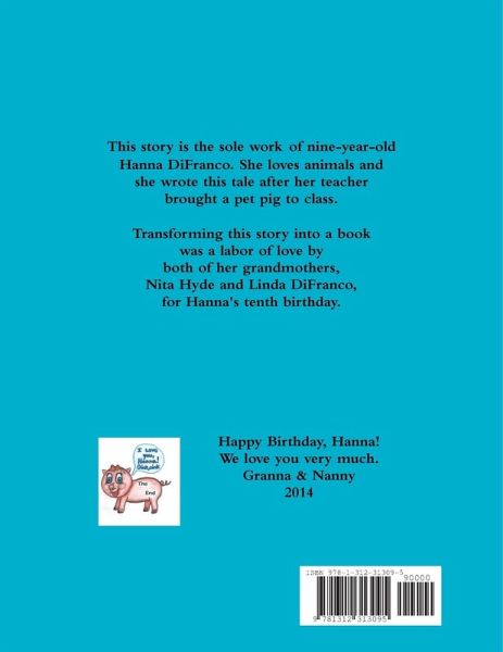 This story is the sole work of nine-year-old Hanna DiFranco. She loves animals and she wrote this tale after her teacher brought a pet pig to class. Prismacolor pencils and her grandmother, Linda S.DiFranco, illustrated this cute little book.