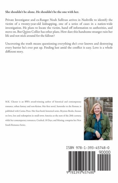 She shouldn't be alone. He shouldn't be the one with her. Private Investigator and ex-Ranger Noah Sullivan arrives in Nashville to identify the victim of a twenty-year-old kidnapping, one of a series of cases in a nation-wide investigation. He plans to locate the victim, hand off information to authorities, and move on. But Quinn Collier has other plans. How dare this handsome stranger ruin her life and not stick around for the fallout? Uncovering the truth means questioning everything she's ever known and destroying every barrier he's ever put up. Finding lust amid the conflict is easy. Love is a whole different story.