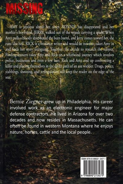 AMY is anxious about her sister. RONNIE has disappeared and her mother's boyfriend, JERRY, walked out of the woods carrying a spade. When Amy pulls a bloody shirt out of the burn barrel, and Jerry comes toward her, she runs like hell. RICK is a freelance writer and would-be novelist, takes Amy in and finds her story intriguing. Together, the decide to research the subject. Finding answers takes Amy and Rick on a whirlwind journey which involves police, businesses and even a few bars. Rick and Amy end up confronting a killer and placing themselves in the direct path of an axe wielder. Drugs, police, stabbings, shooting, and strangulation will keep the reader on the edge of the seat.